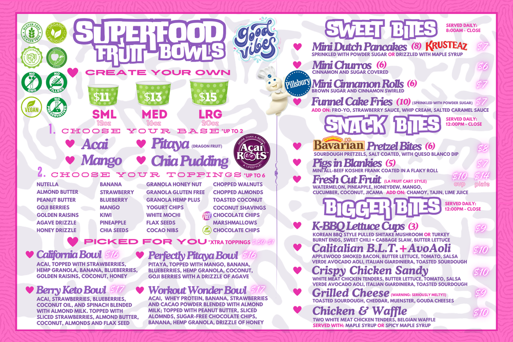 - Indulge in their signature Calitalian B.L.T, or create your own acai bowl!