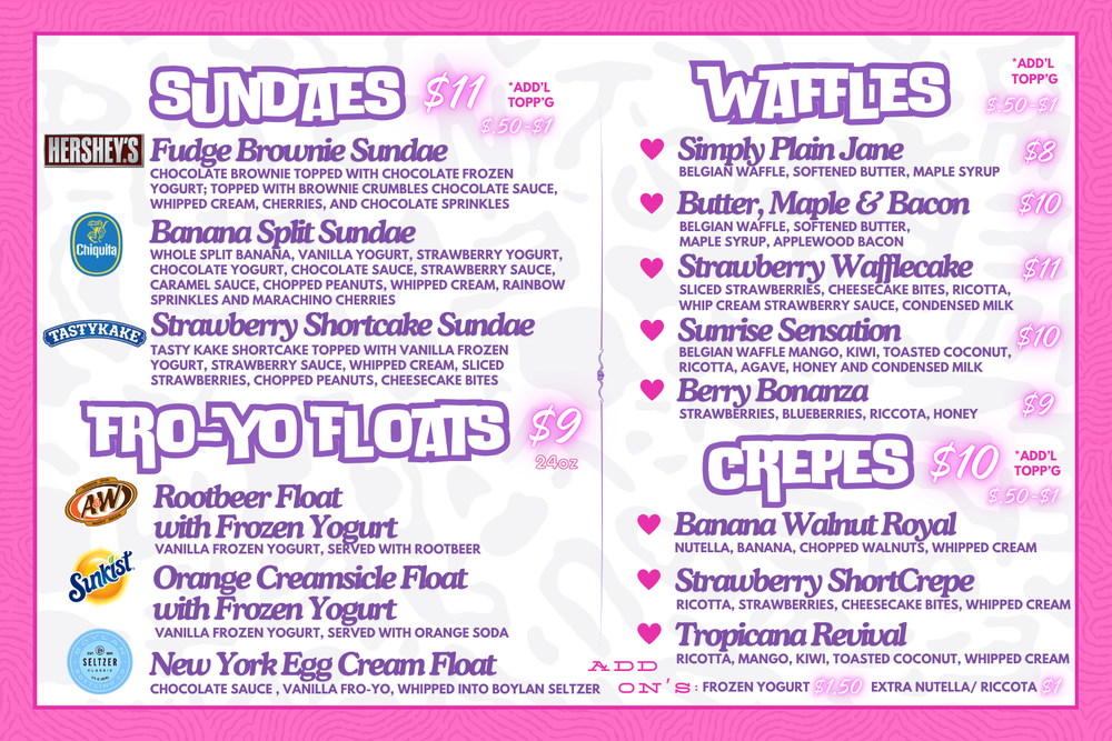 Our take on a classic New York Egg Cream does not contain eggs we blend Chocolate Sauce with Boylans Seltzer and add a Vanilla Frozen Yogurt float. Yum!