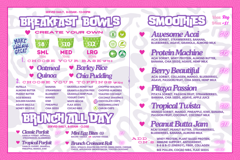 Bon Bon Berry Acai Bowl & Frozen Yogurt Menu